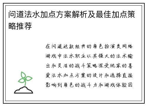 问道法水加点方案解析及最佳加点策略推荐